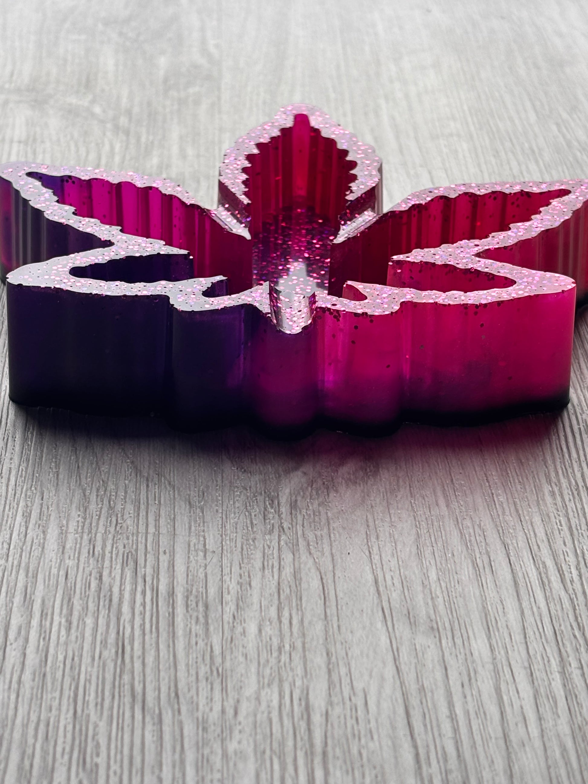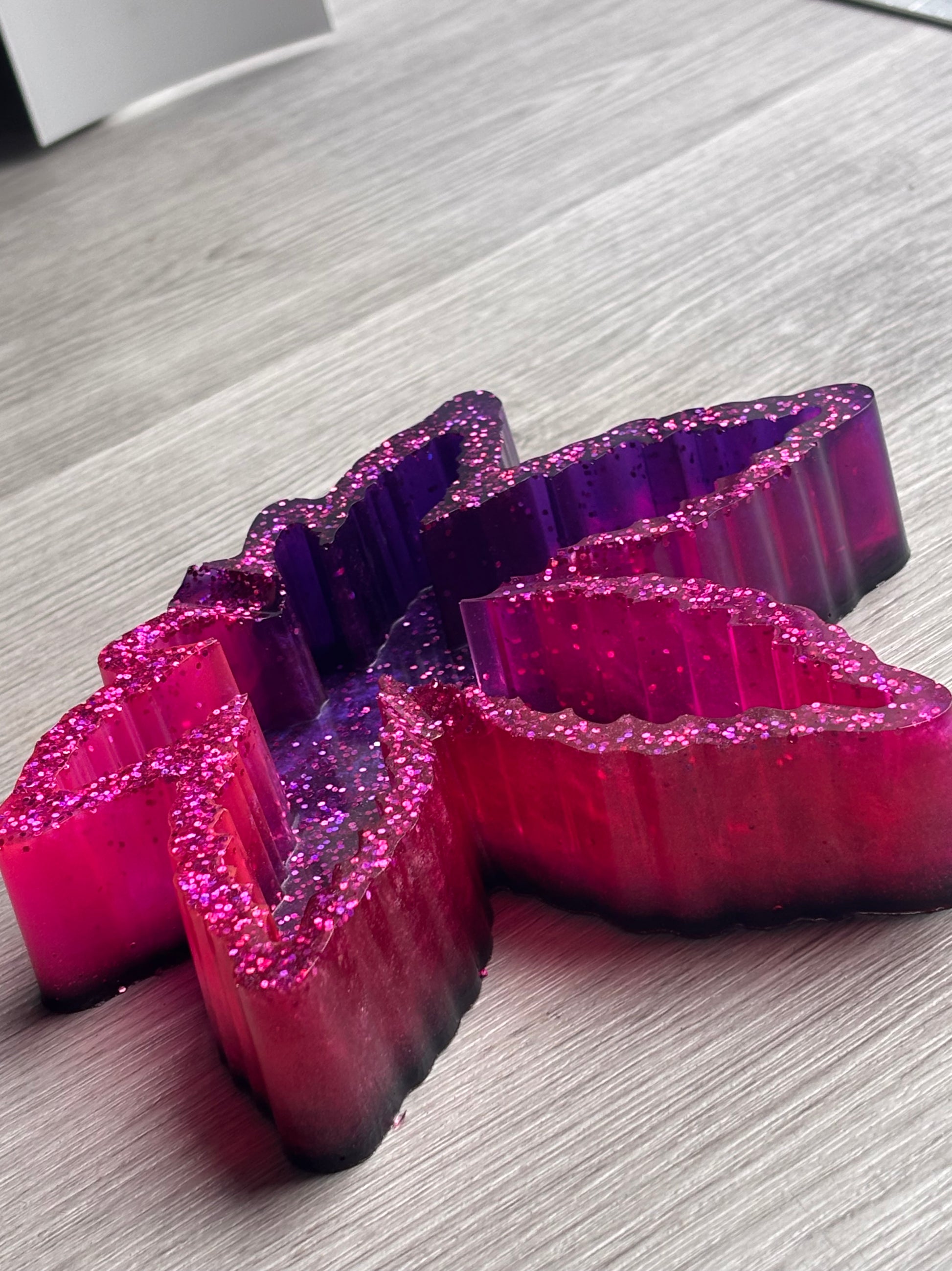This pink and purple ashtray features bright pink and purples with a unique sparkle design and a black bottom. Handmade and crafted from durable and long lasting materials. Ideal for both functional and decorative purposes!