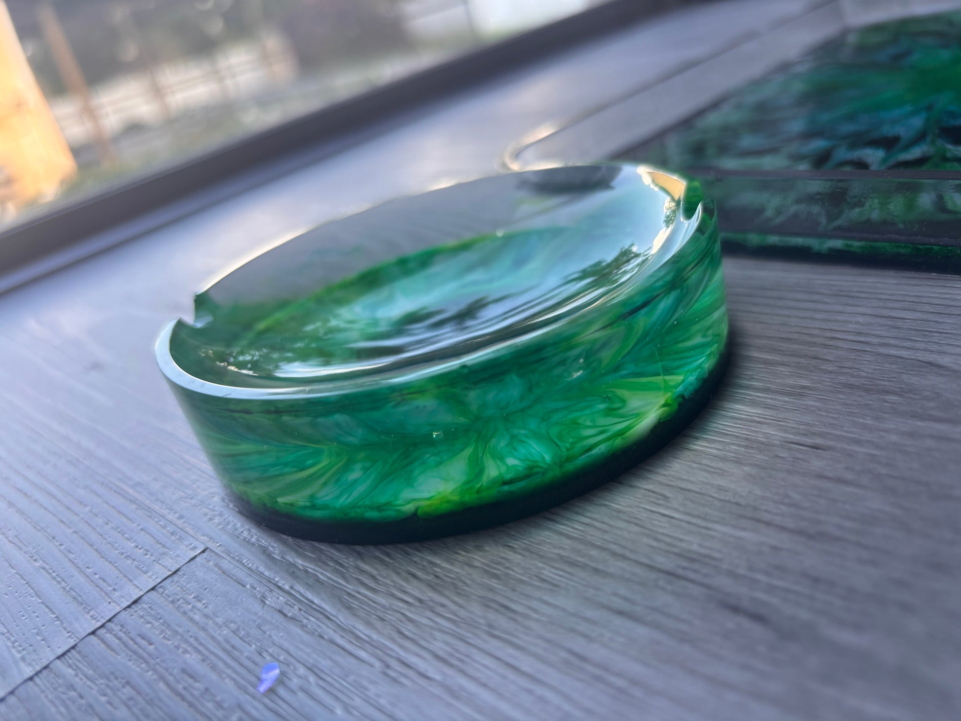 This small green bloom ashtray features a handcrafted design, combining functionality with aesthetic appeal. It offers a perfect solution for your smoking needs, and is a compact size that makes it ideal for small spaces. Ensuring convenience without compromising style.